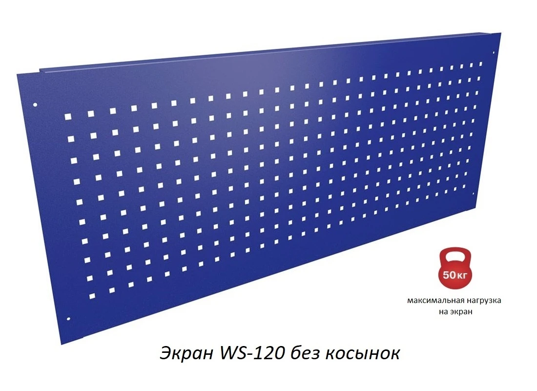 - Важным дополнительным элементом верстака является перфорированный экран из металла толщиной 1.2. мм. Он защищает стену за верстаком, а частая перфорация с шагом 38 мм позволяет удобно расположить различные держатели, полочки для небольших предметов, блок розеток, а также ‒ комплект диодного освещения со световым потоком 880 люмен.